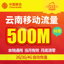 云南移动流量充值500M 省内通用手机流量叠加包充流量移动流量包