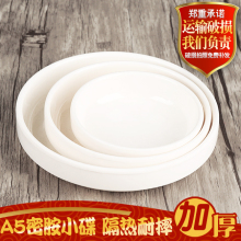 塑料盘子圆形A5密胺盘子仿瓷餐具白色菜盘浅盘平盘盖浇饭盘子饭店