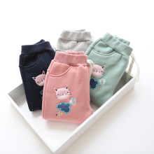 小时候童品 2017秋冬款猫咪刺绣儿童宝宝抓绒运动裤 休闲加绒裤子