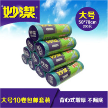 妙洁背心式垃圾袋大号中号家用环保厨房加厚手提袋10卷装部分包邮