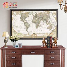 必画 超大世界地图挂画英文中文版玄关装饰画书房客厅办公室 壁画