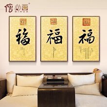 中式字画竖版福字客厅装饰画玄关壁画书房挂画横幅五福毛笔书法