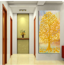 风水画发财树单幅无框画玄关客厅装饰画抽象竖版挂画楼梯墙画壁画
