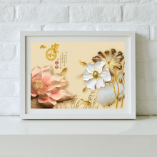 客厅装饰画现代三联画卧室墙画沙发背景墙挂画中式壁画有框画荷花