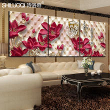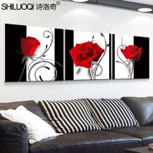 玫瑰花客厅水晶装饰画简约现代三联挂画婚房沙发电视背景墙壁画