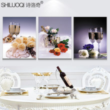 诗洛奇餐厅冰晶玻璃装饰画现代简约水晶挂画三联框画酒杯水果壁画
