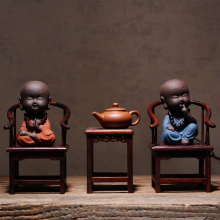 创意禅意紫砂小和尚摆件现代陶瓷工艺品中式家居玄关店铺装饰摆设
