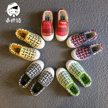 儿童帆布鞋2017春款男女童彩色编织鞋透气学生板鞋一脚蹬豆豆鞋潮