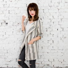 Orange Bear/桔熊精选纯色开襟反折袖针织长款外套女大码 FA0489