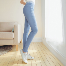 桔熊韩版休闲弹力牛仔小脚铅笔裤腰部松紧纯色长裤大码BA0221