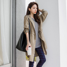 桔熊韩版甜美翻领抽绳长款女装雪纺风衣外套大码EA1047