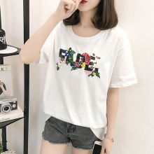 白色t恤女短袖上衣女夏2017新款学生印花宽松体恤韩版潮休闲 百搭