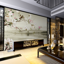 电视背景墙壁纸中式玉兰壁纸大型壁画客厅卧室墙纸3d影视墙布花鸟