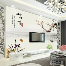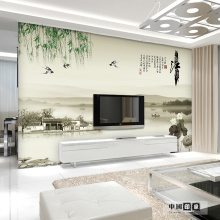 中式水墨江南山水客厅电视背景墙影视墙装饰无缝卧室客厅壁画墙布