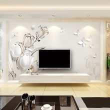 电视背景墙壁纸 3D墙纸无缝墙布大型壁画 客厅卧室现代简约郁金香