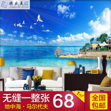 捷盛美3d立体无纺布墙纸 客厅电视背景墙壁纸 沙发海景大型壁画