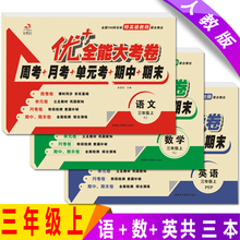 2016秋优+全能大考卷周考+月考+单元考+期中+期末 数学三年级上册 人教版语文 数学 英语共3本3年级上册 百所名校特高级教师