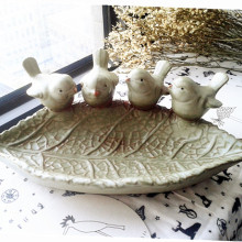 果果家 4小鸟绿釉树叶陶瓷果盘 零食盘 钥匙盘 手机盘 干果香皂盘