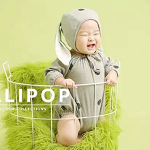 百天宝宝摄影服装可爱动物装兔子款灰色连体衣婴儿衣服百天套装