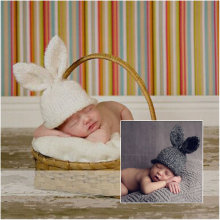 欧美新生儿手工摄影帽子/毛线帽子/婴儿摄影帽子/百天兔子头帽子