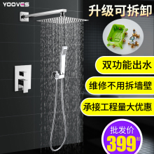 亚维思 嵌入墙式淋浴花洒套装 暗装预埋盒吊顶全铜冷热混水阀酒店