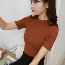 2017春装打底衫半高领短袖T恤针织衫纯色女薄外套春季毛衣女上衣