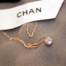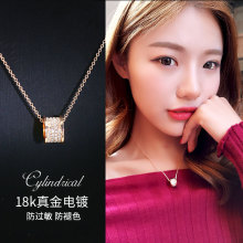 韩国简约18K玫瑰金锆石项链女 时尚百搭短款吊坠装饰锁骨链礼物