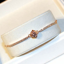 韩版时尚18K玫瑰金花朵手链女 韩国名媛气质简约镶钻手镯手环饰品