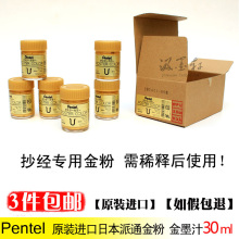 进口Pentel派通金粉颜料金墨汁抄经书法用写对联金色墨汁毛笔30ML