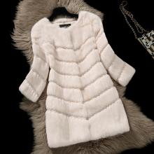 整皮兔毛中长款皮草外套2016秋冬新款韩版修身圆领七分袖特价清仓