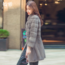 姣雅中长款整皮水貂皮草外套2015冬装新款韩版女装海宁貂皮大衣