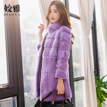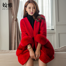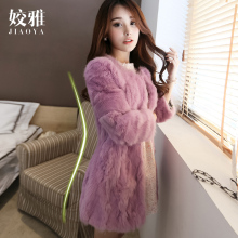 姣雅中长款兔毛皮草外套2016冬装新款韩版女士女装加厚海宁清仓