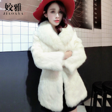 姣雅整皮兔毛皮草中长款2017冬装新款韩版女装修身狐狸毛领外套