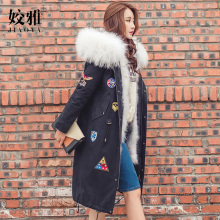姣雅海宁2017冬装新款狐狸毛内胆皮草外套女装长款派克服派克大衣
