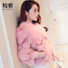 姣雅短款狐狸毛皮草外套女2016冬装新款韩版女装加厚海宁女士翻领