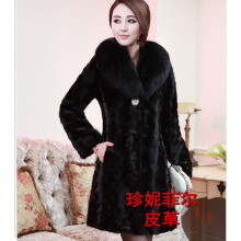 仿水貂皮草外套中长款韩版皮草女大衣仿狐狸毛领加厚保暖妈妈款
