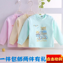 春款儿童长袖纯棉秋衣单件上衣0-5岁 宝宝提花家居服婴儿衣服包邮