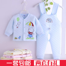 春夏宝宝夹棉内衣套装 新生婴儿纯棉加厚保暖内衣套装0-1岁 包邮