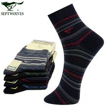 5双礼盒装七匹狼袜子男袜休闲男士棉袜中筒条纹 运动男袜男人袜