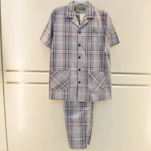 秋鹿睡衣2017夏季帅气男士纯棉梭织色织经典格男短袖长裤家居服套