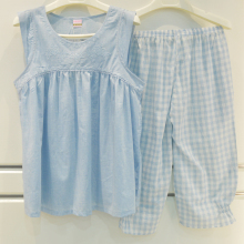 安之伴睡衣2017夏季女士梭织花纱插色织清凉七分裤格背心家居服套