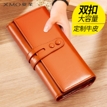 夏茉2017新款女士长款钱包女卡包大容量牛皮手拿搭扣多韩版女卡夹