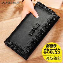 夏茉2017新款真皮羊皮钱包 女 长款 蝴蝶结女式钱夹韩版女士钱包