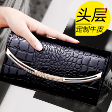 钱包女 真皮 2017新款 欧美牛皮鳄鱼纹女人女式钱夹 女士钱包长款