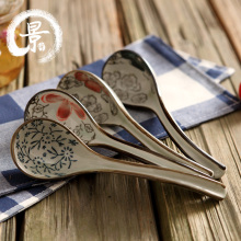 景德镇 日式和风釉下彩陶瓷勺子青花釉创意复古汤匙实用调羹量勺