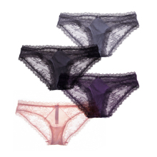 性感睫毛蕾丝透明女士低腰三角内裤 灰/肤/紫/黑/粉 5色