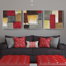 金石抽象画现代简约客厅挂画卧室创意装饰画油画三联画壁画无框画