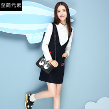 2017春装新款韩版女装长袖背带连衣裙时尚冬季假两件套打底短裙子