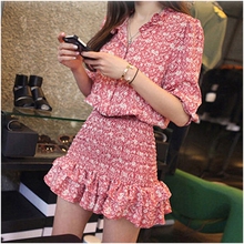 2017春装新款女装韩版气质夏季两件套夏天雪纺短裤套装夏装时尚潮