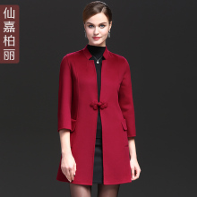 2016秋冬双面绒羊毛大衣女中长款毛呢外套中老年妈妈装复古盘扣